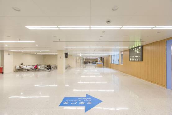 診室候診區(qū)燈具、噴頭、風(fēng)口、煙感排布精細(xì)美觀,橫成排、豎成行、斜成線,錯落有致