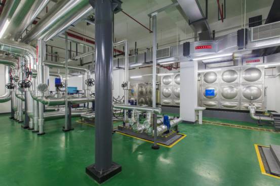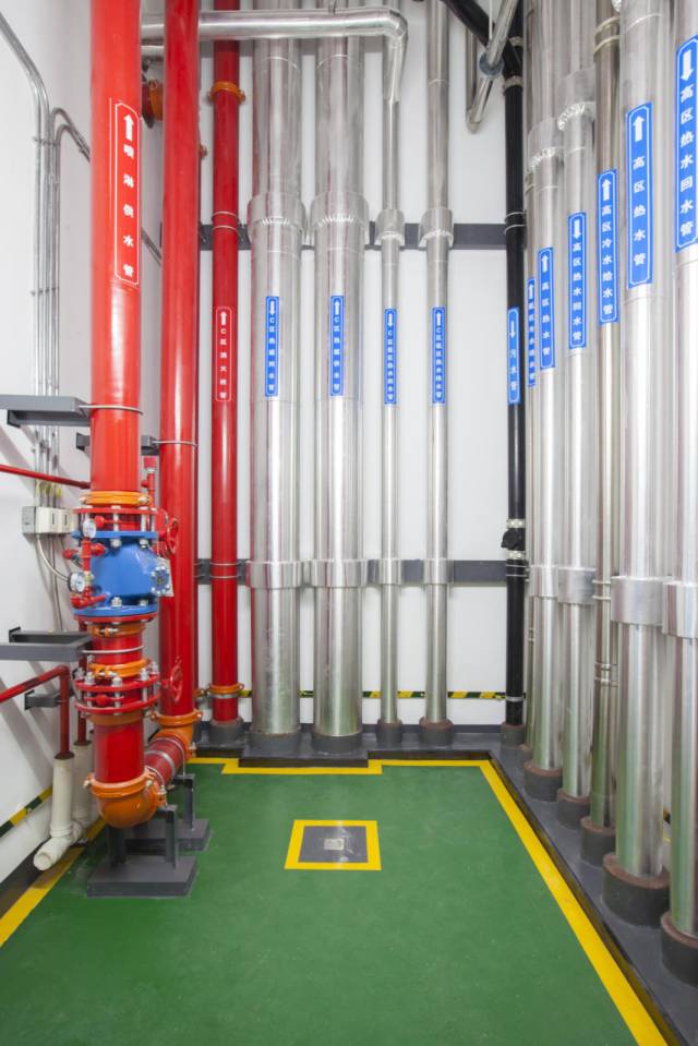 空調(diào)換熱機(jī)房布局合理,設(shè)備運行可靠,支架安全、可靠、大氣,標(biāo)識清晰