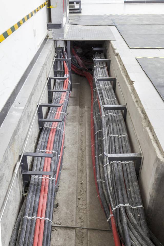 配電房內(nèi)配電柜安裝布置合理,安裝垂直牢固,電纜溝內(nèi)線纜鋪設(shè)有序,標(biāo)識清晰,接地可靠,系統(tǒng)運行平穩(wěn)。