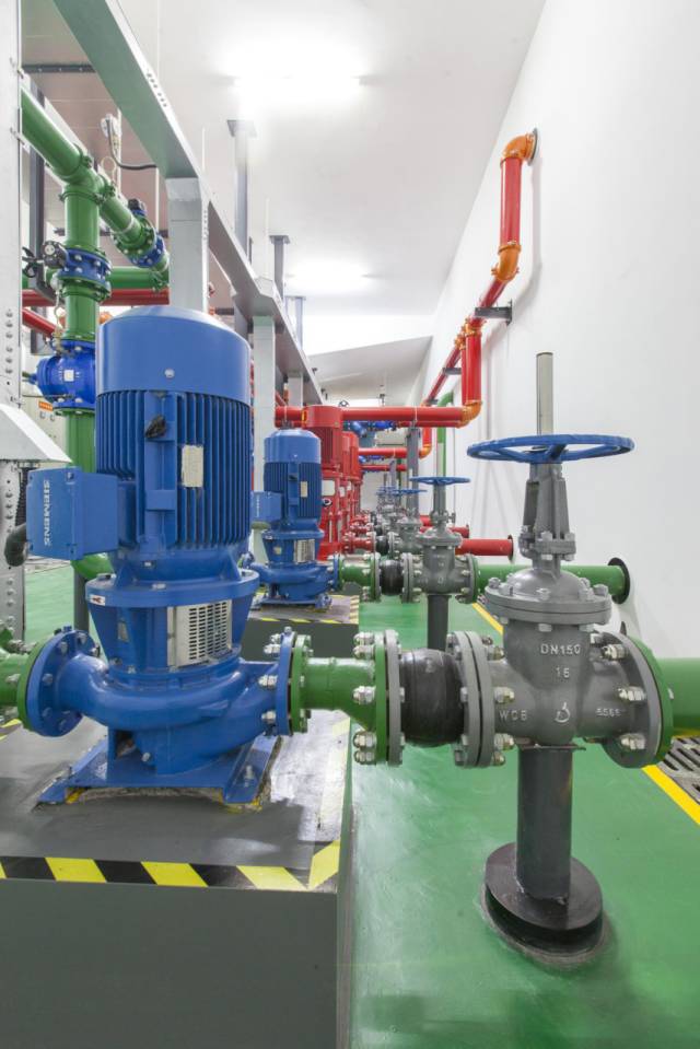 生活水泵房設(shè)備布局美觀,鋁皮外保護(hù)精致,管道成排成線,標(biāo)識清晰