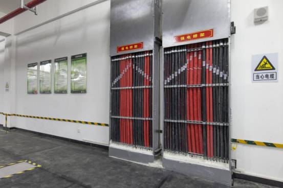 豎向橋架內(nèi)電纜排布有序,標(biāo)識清晰,防火封堵到位