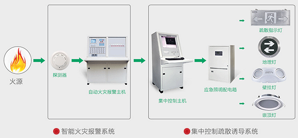 1)集中控制型消防應(yīng)急照明和疏散指示系統(tǒng),應(yīng)由火災(zāi)報警控制器或消防聯(lián)動控制器啟動應(yīng)急照明控制器實現(xiàn)。