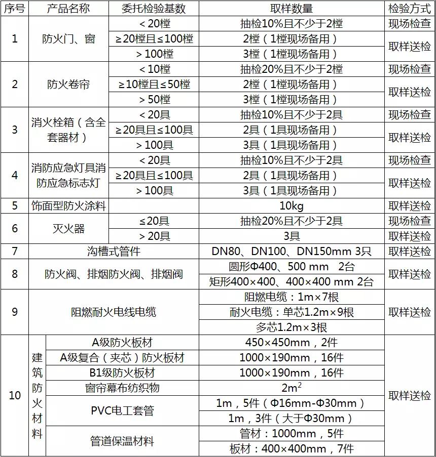 工程建設(shè)領(lǐng)域選用消防產(chǎn)品委托檢驗基數(shù)及取樣數(shù)量列表