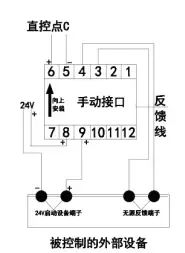 5. 手動(dòng)接口為多線模塊,不用編碼,主機(jī)上的每個(gè)直控點(diǎn)都對(duì)應(yīng)一個(gè)手動(dòng)接口,直接從主機(jī)布線到現(xiàn)場中間不連接任何設(shè)備,5、6端子要分極性