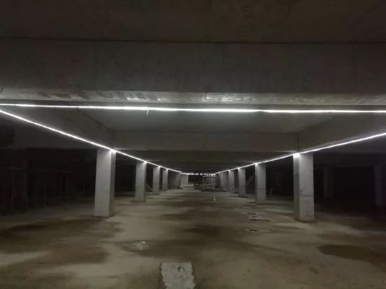 在地下室具備布設照明時,根據(jù)照明要求,沿梁下設置燈帶,燈帶連接使用專用接頭。相對傳統(tǒng)照明布設,LED燈帶具有以下特點:體積小,亮度高;綠色環(huán)保,節(jié)能;高效穩(wěn)定,無連接處的陰影;使用壽命長(一般正常壽命在8~10萬小時),布置簡單,拆改方便快捷的特點。