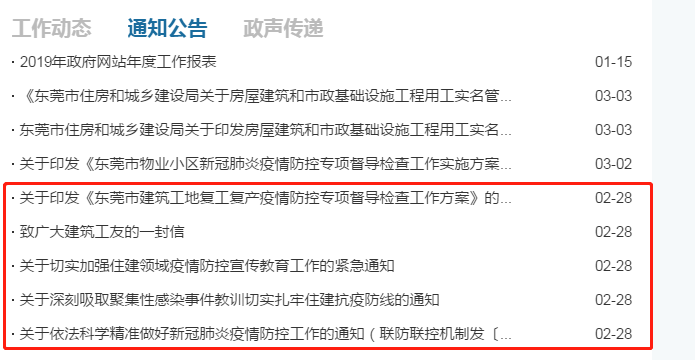 其中,《東莞市建筑工地復(fù)工復(fù)產(chǎn)疫情防控專項督導(dǎo)檢查工作方案》要求對復(fù)工工地嚴(yán)加管理。