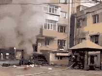 在動圖示例中,即使操控者為專業(yè)人員,同樣被水槍水帶作用力沖倒,如在室內(nèi)火場出現(xiàn)類似情況,將非常危險。