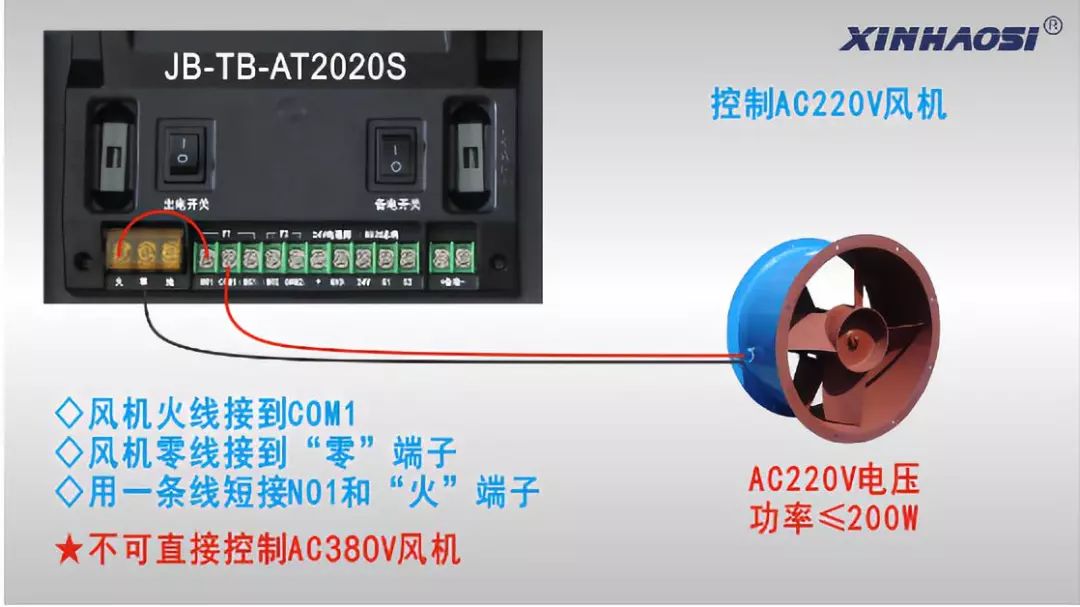 對(duì)于外控設(shè)備,我們控制器上都有無源開關(guān)量的接線端,按照下圖所示方式接線即可(其他總線制控制器請(qǐng)參照JB-TB-AT2020S接線)。