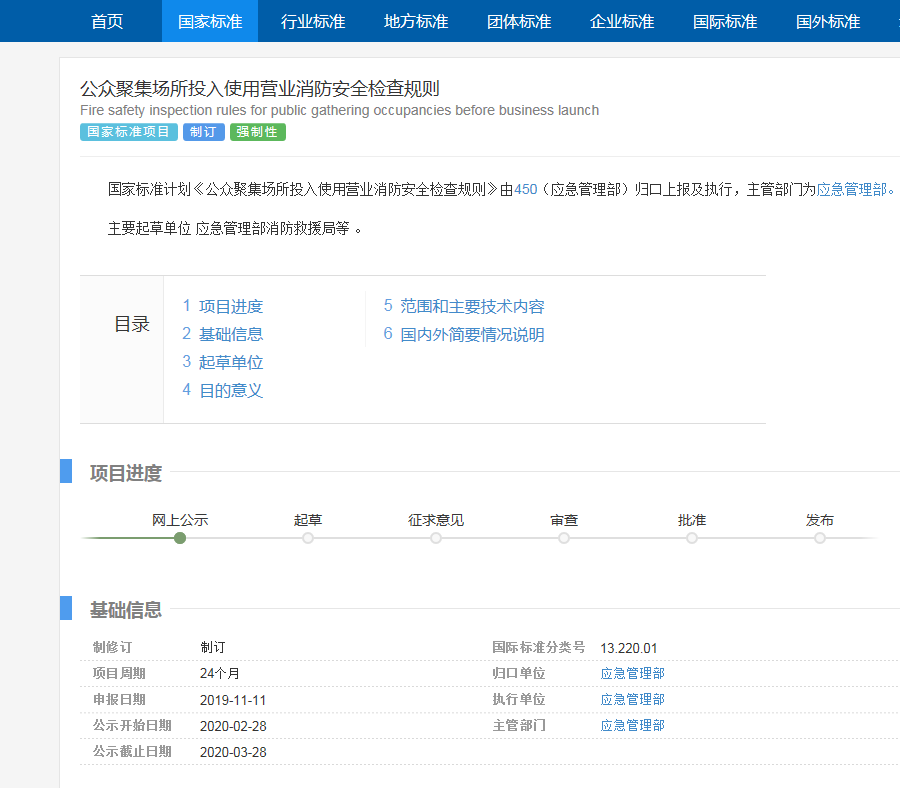 《公眾聚集場(chǎng)所投入使用營(yíng)業(yè)消防安全檢查規(guī)則》擬立項(xiàng)編制