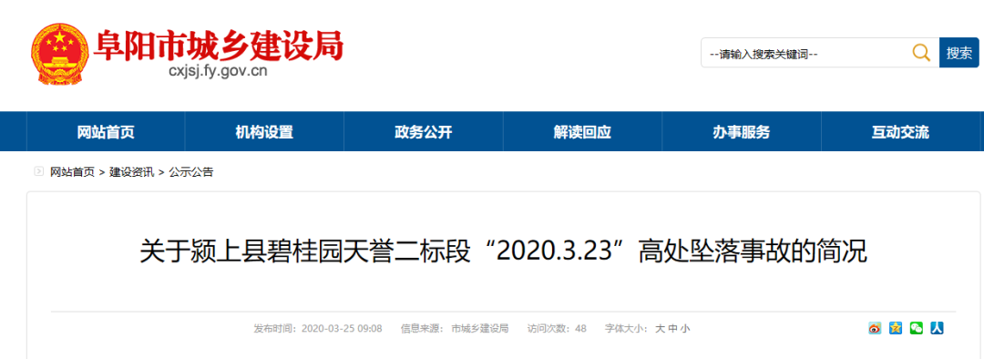 2020年3月23日7時(shí)55分左右,潁上縣碧桂園·天譽(yù)二標(biāo)段項(xiàng)目,1名腳手架班組工人在進(jìn)行腳手架拆除作業(yè)時(shí),不慎從 26層墜落至地面死亡。