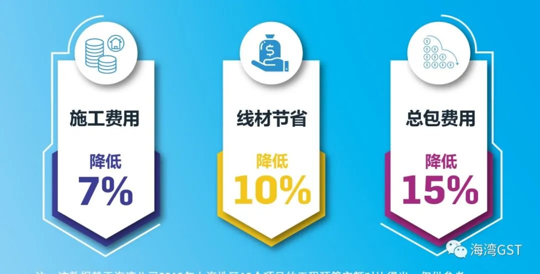 注:該數(shù)據(jù)基于海灣公司2019年上海地區(qū)10個項目的工程預算定額對比得出,僅供參考。