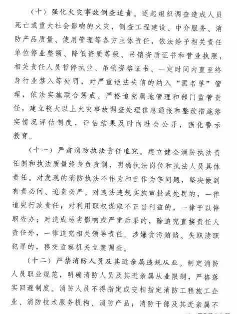 在加強事中事后監(jiān)管方面,實行“雙隨機、一公開”監(jiān)管,明確抽查范圍、抽查事項和抽查細(xì)則,合理確定抽查比例和頻次;針對火災(zāi)多發(fā)頻發(fā)的行業(yè)和領(lǐng)域,適時開展集中專項整治,對隱患突出、有嚴(yán)重違法違規(guī)記錄的單位,實施重點監(jiān)管;建立消防舉報投訴獎勵制度,鼓勵群眾參與監(jiān)督;將消防違法違規(guī)行為記入信用記錄,嚴(yán)重違法失信企業(yè)納入“黑名單”管理,依法實施聯(lián)合懲戒;完善“互聯(lián)網(wǎng)+監(jiān)管”,運用物聯(lián)網(wǎng)和大數(shù)據(jù)技術(shù),實時化、智能化評估消防安全風(fēng)險,實現(xiàn)精準(zhǔn)監(jiān)管;強化火災(zāi)事故倒查追責(zé),逐起組織調(diào)查造成人員死亡或造成重大社會影響的火災(zāi),倒查工程建設(shè)、中介服務(wù)、消防產(chǎn)品質(zhì)量、使用管理等各方主體責(zé)任,嚴(yán)肅責(zé)任追究。