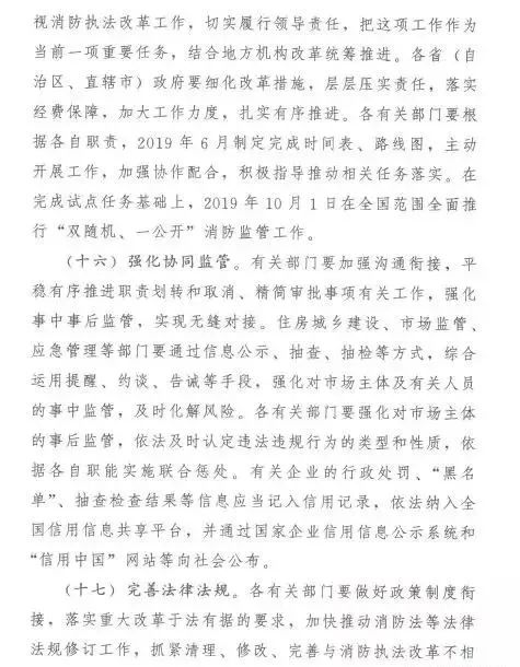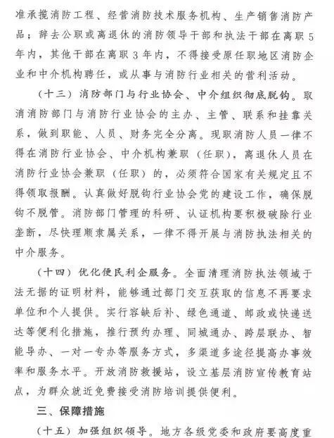 《意見》還從加強組織領(lǐng)導(dǎo)、強化協(xié)同監(jiān)管、完善法律法規(guī)、抓好督促落實4個方面提出了深化消防執(zhí)法改革的保障措施。