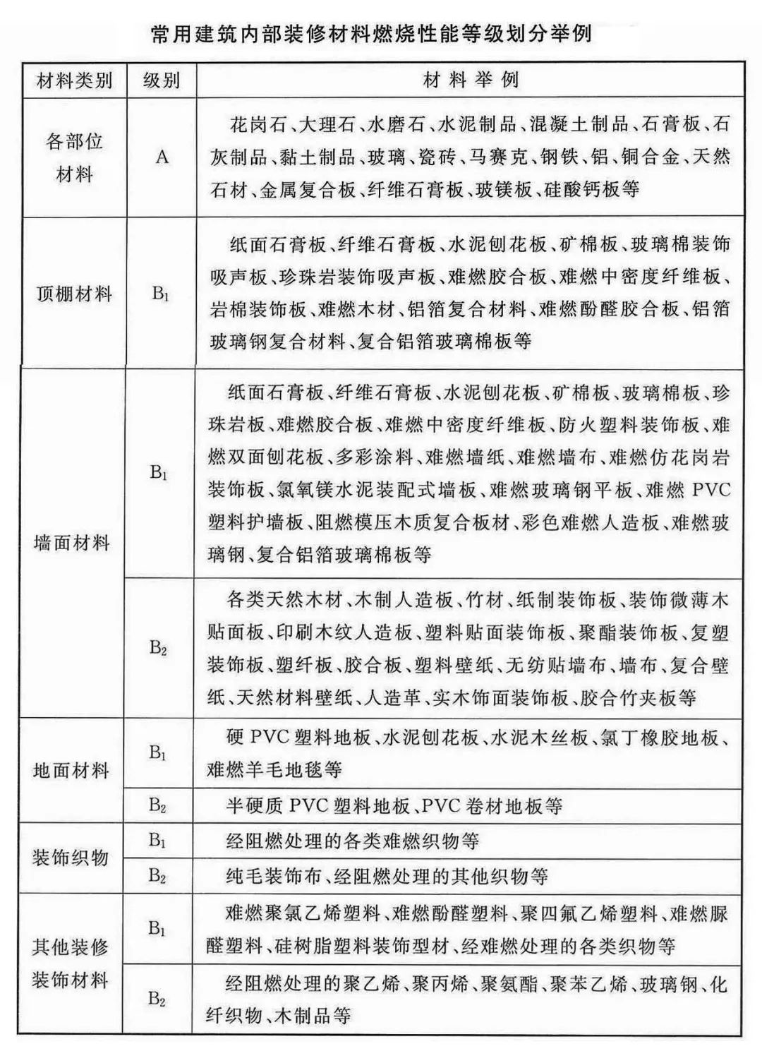 建筑用途、場所、部位不同,所使用裝修材料的火災(zāi)危險(xiǎn)性不同,對裝修材料的燃燒性能要求也不同。
