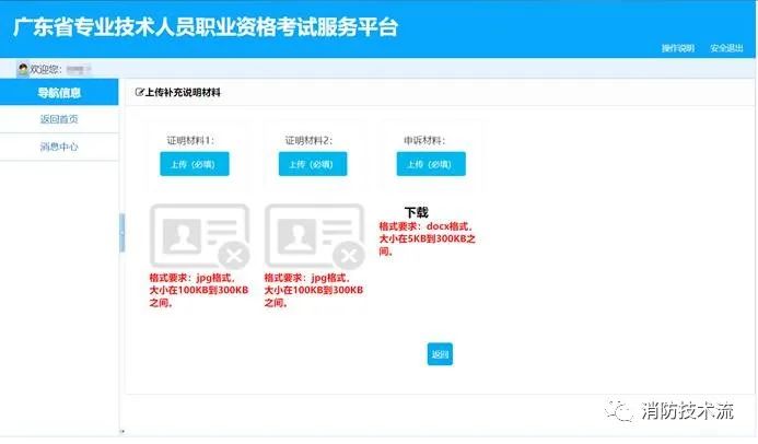 4.如辦理的業(yè)務需上傳補充材料,則點擊【上傳材料】按鈕,進入上傳材料頁面,按照類型、格式、文件大小要求,上傳。