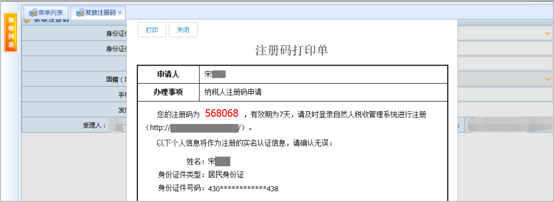 納稅人攜帶本人有效身份證件到辦稅服務廳獲取注冊碼,注冊碼有效期7天(注冊碼由6位的數(shù)字、字母隨機組成)。