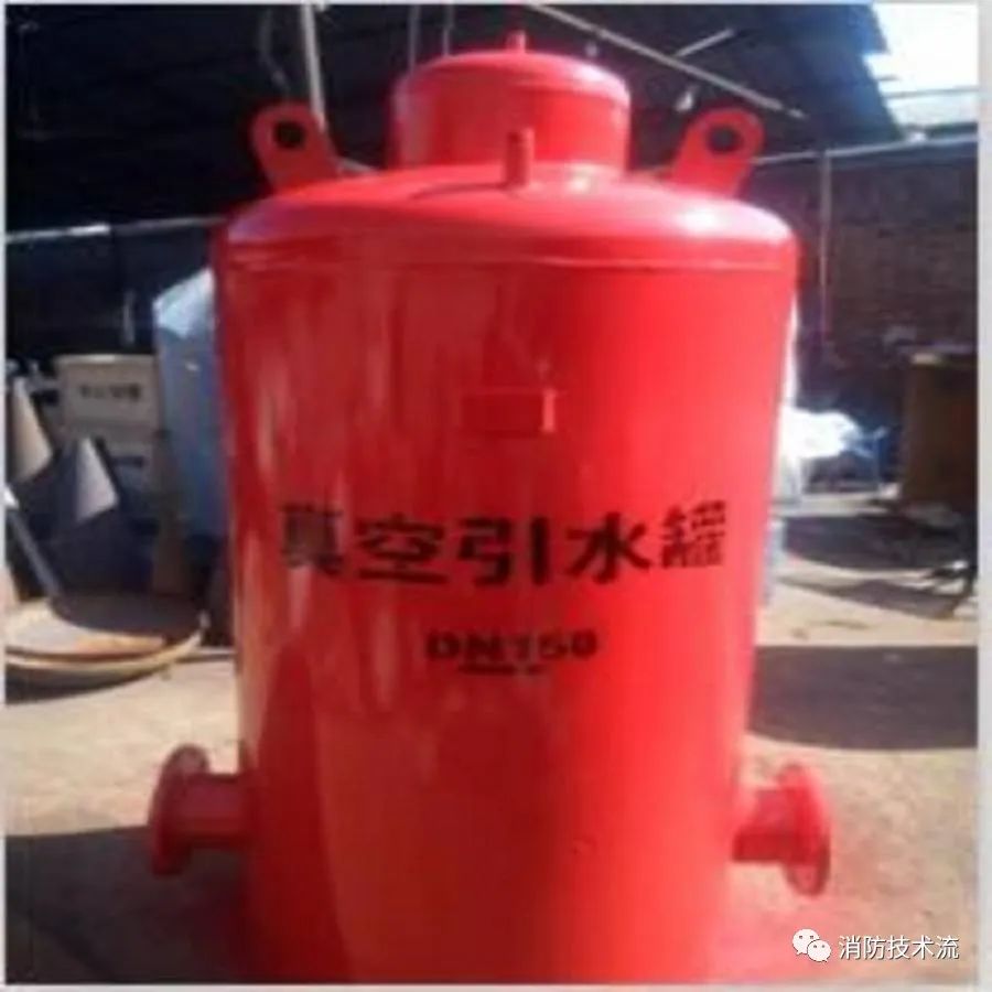 一些老舊建筑的改造,受面積或位置原因?qū)е孪浪貌荒軐崿F(xiàn)自灌式吸水,比如消防水泵只能安裝在消防水池的上蓋,此時水泵的吸水管只能向下伸入水池的水位中,造成吸水管一段管道無水,這種情況消防水泵在啟動時不能吸上水,而這樣的例子并不少見,以下介紹的真空罐(也稱負壓罐)是解決這個問題的一種方式。