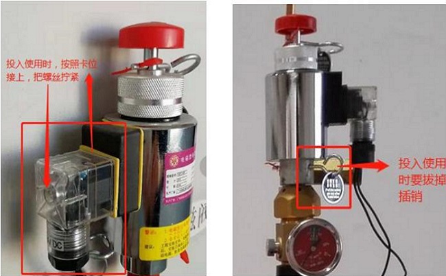 電磁驅(qū)動(dòng)裝置上裝有插銷,是為了防止在運(yùn)輸、安裝、調(diào)試過程中碰撞、震動(dòng)使閘門誤動(dòng)作。在現(xiàn)場安裝完畢,投入使用前必須抽出安全插銷,否則閥門將打不開。